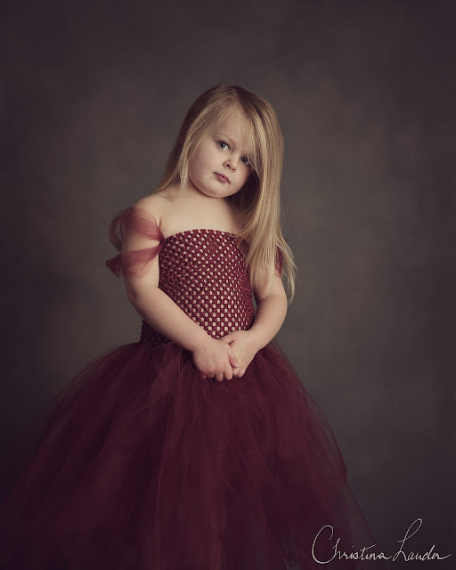 However it doesn’t always go to plan. I made burgundy tulle dresses, one for each, which I felt worked well for a Christmas time portrait. I thought it would be wonderful to create a loving sister portrait. But we can’t always get what we want, particularly when working with 2 young girls under the age of 3.